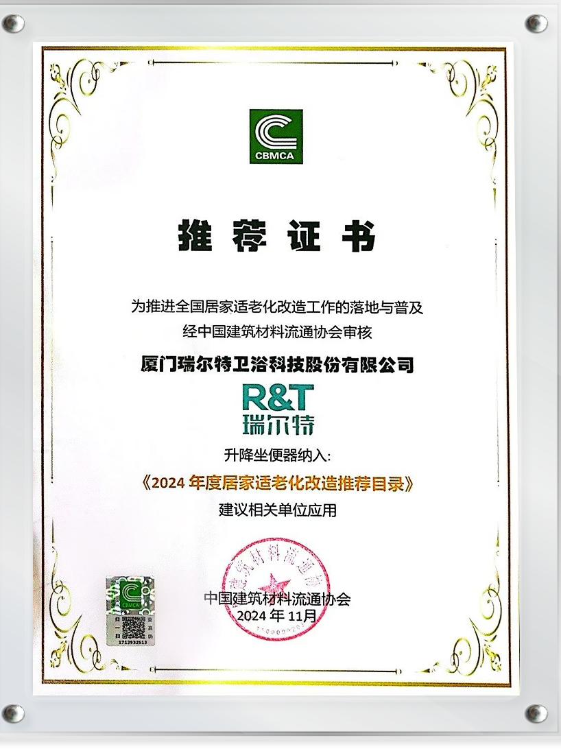 2024年11月,瑞尔特斩获全国适老设计大赛银奖佳绩,其中升降器坐便器更是成功入选《2024年度居家适老化改造推荐目录》,彰显了品牌在行业内的领先地位与深远影响力。
