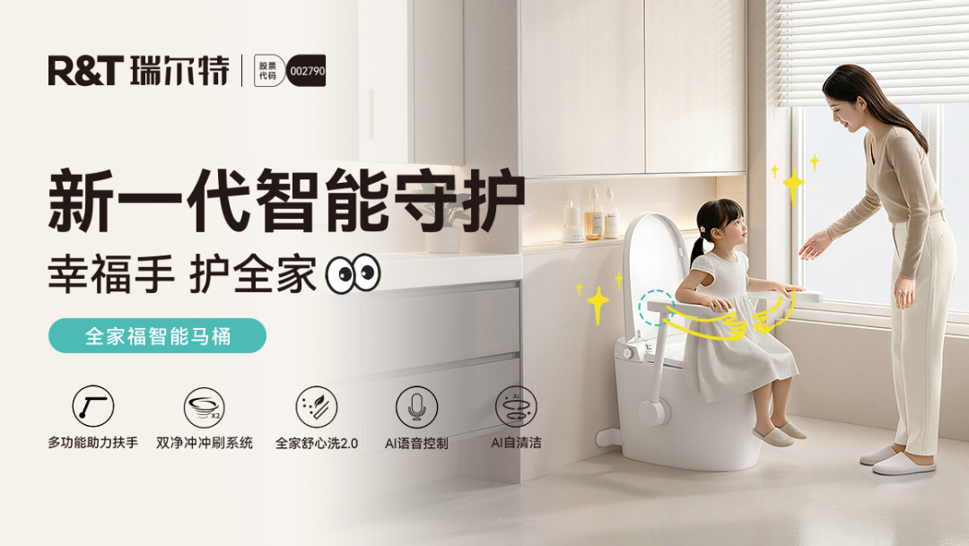 而在适老化领域,瑞尔特更是展现出作为行业领军者的深度思考。卫浴空间是居家养老安全隐患的高发区,瑞尔特提出 “以无障碍升降系统为核心的康养卫浴解决方案” ,精准击中了老年人“起身难、防滑难、监测难”的痛点,自主研发的升降坐便器、升降面盆、坐式淋浴器等产品,凭借可调节升降、高承重安全、超静音运行的优势特征,更是入选国家工信部 “2025年度中国消费名品”(适老化产品全国唯一入选卫浴品牌),荣获全国适老化设计大赛银奖。此外,如“全家福智能马桶”搭载了高达100KG稳固支撑的多功能助力扶手,配合AI智能语音控制,用科技跨越数字鸿沟,让长者在如厕与洗漱的每一个细节中都能感受到安全与尊严。