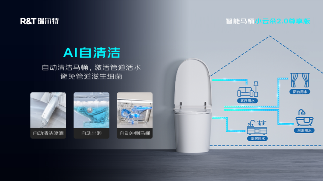 会自己洗澡的马桶 AI 了! 4 月 2 日,瑞尔特重磅亮相京东闪店新品发布会,全新智能马桶——小云朵2.0系列正式亮相。